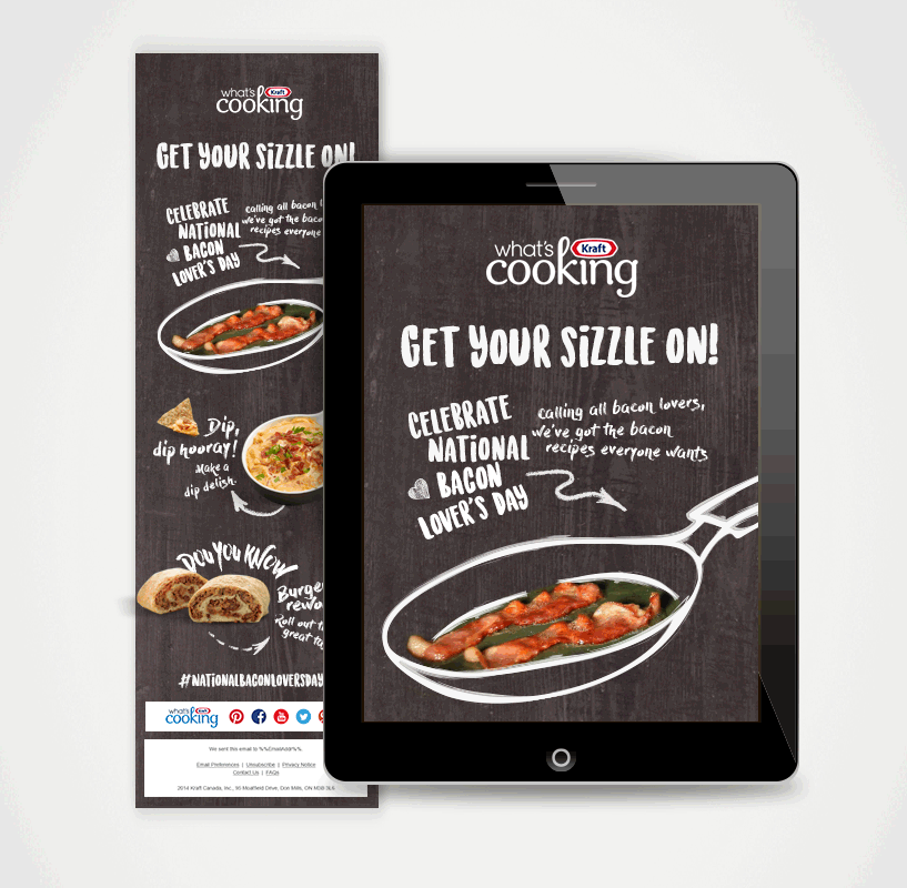 Awakening the viewers’ appetite with sizzling bacon, this newsletter promotes national bacon lover's day with Kraft.